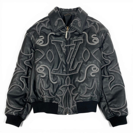 d2 《美品》 LOUIS VUITTON ルイヴィトン エンブロイダリー レザーボンバージャケット Embroidered Leather Bomber Jacket サイズ52 ブラック 牛革 超希少t18r