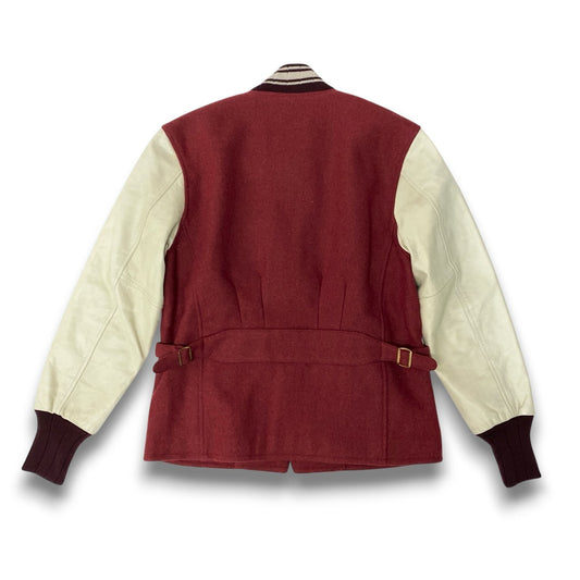 74c20 CUSHMAN クッシュマン 袖レザー 裏キルティング ウールスタジャン サイズM ボルドー クリーム メンズ アウター レザースタジャン アメカジk02i