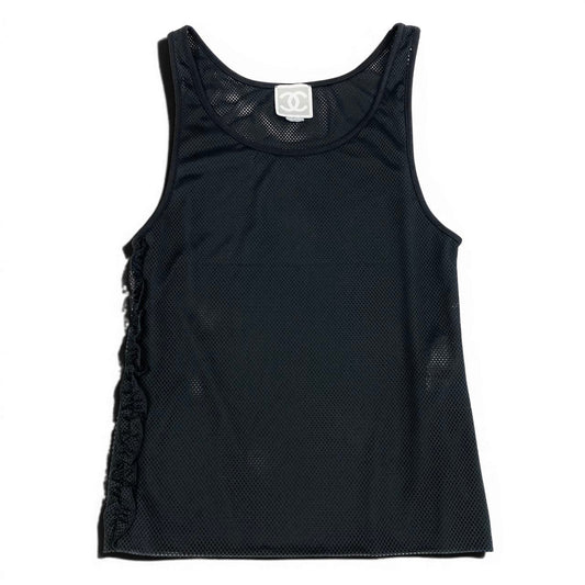 Cd23 CHANEL シャネルスポーツ 2003年 IDENTIFICATION メッシュ ノースリーブカットソー タンクトップ サイドフリル ココマーク P21070 サイズ40 ブラック ポリエステル100% レディース 女性服o07t