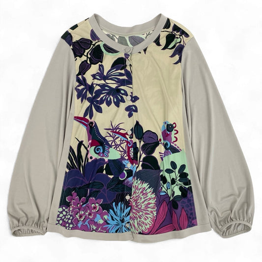 64k19 TOKUKO 1er VOL トクコプルミエヴォル ロングスリーブカーディガン ジャケット 花柄プリント くるみボタン レディース 女性用 9 グレージュu02t