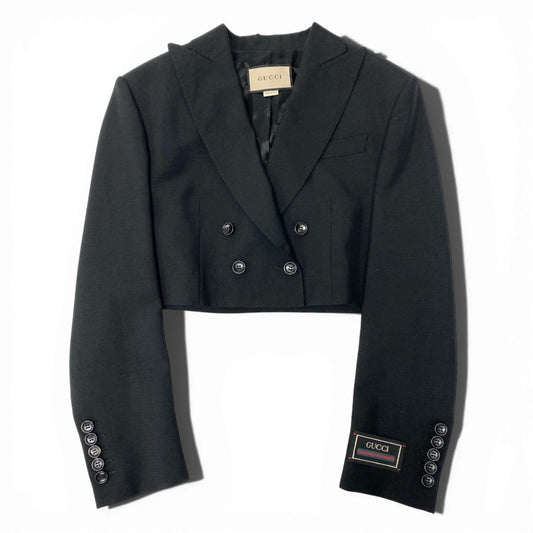 38d3 【美品】GUCCI グッチ ダブルブレストショートジャケット クロップド丈 テーラードジャケット 40サイズ ブラック レディース 女性用o07t
