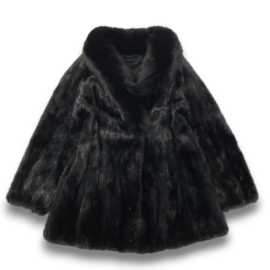 34c20 ダークミンク × フォックスファー コート サイズ11 ブラック 本毛皮 Mink × Fox Fur Coatt18r