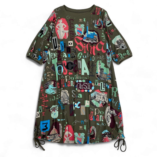 2k19 TOKUKO 1er VOL トクコプルミエヴォル 全面プリント ロングワンピース 半袖ワンピース 伸縮ストレッチ 9 カーキ系 レディースu02t