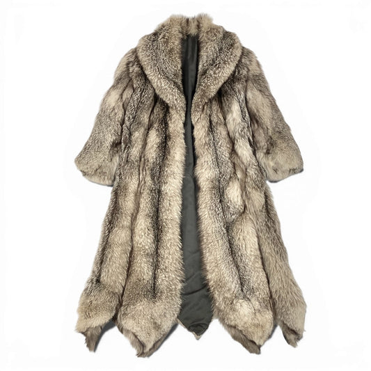 71a15 希少デザイン 極厚 シルバーフォックス 超ロングコート 丈120cm サイズF 茶系 本毛皮 Fox Fur Long Coatt18r