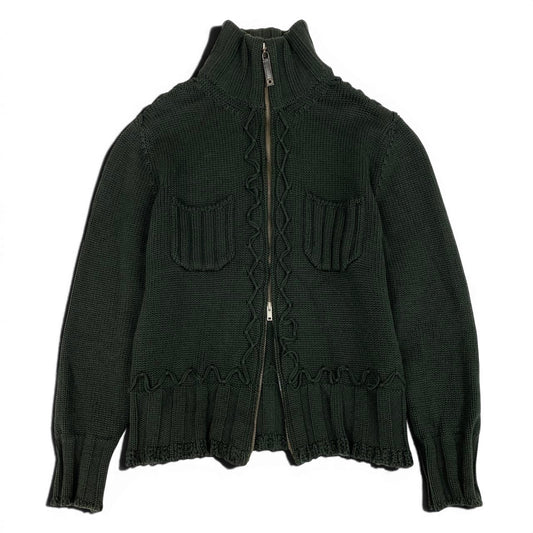 8d16 Roberto cavalli ロベルトカヴァリ ニットジャケット ハイネックニットジャケット アウター ダブルジップ 50サイズ カーキ ウール100% メンズ 男性用u02t