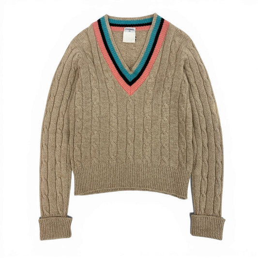 60b9 【美品】CHANEL シャネル 1996 カシミヤ スクールニット ロングスリーブニットセーター ココマーク PO8766W02335 42サイズ ベージュ レディース 女性用k02i