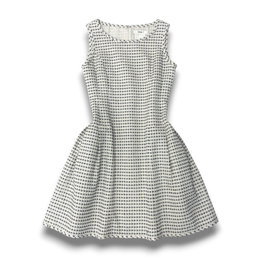 55c20 Rene ルネ サマーツイードワンピース ドレスワンピース イタリア製生地 36 ホワイト ブルー レディースu02t