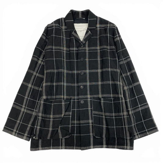 61b9《極美品》 toogood トゥーグッド THE PHOTOGRAPHER JACKET オーバーサイズ チェックジャケット 6 ブラック リネン メンズk02i