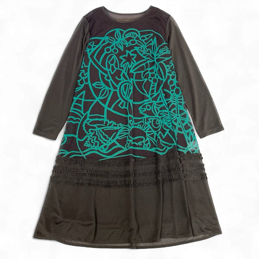 64k19 TOKUKO 1er VOL トクコプルミエヴォル ロング シアーワンピース 長袖ワンピース 総柄プリント ペチコート付 レディース 女性用 9 ブラウンu02t