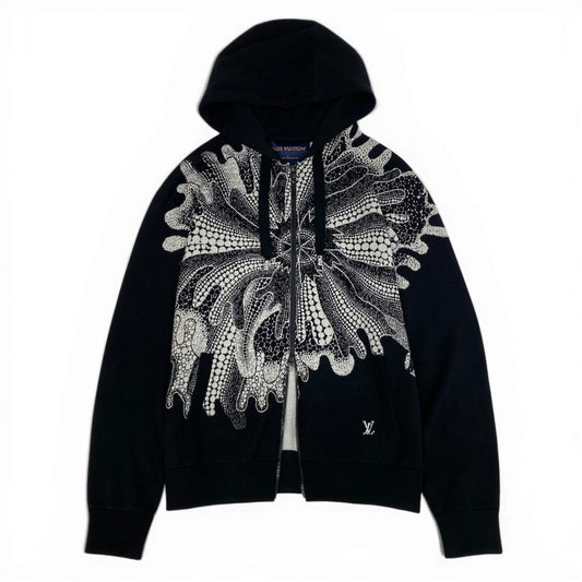 Id2 《極美品》 LOUIS VUITTON ルイヴィトン × 草間彌生 サイケデリックフラワー ウールニットパーカー Psychedelic Flour Wool Knit Parka サイズL ブラック Yayoi Kusamat18r