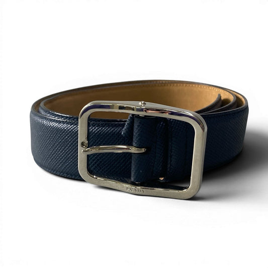 d23 PRADA プラダ サフィアーノ レザーベルト 型押しレザー イタリア製 36/90 ネイビー メンズ 紳士用u02t