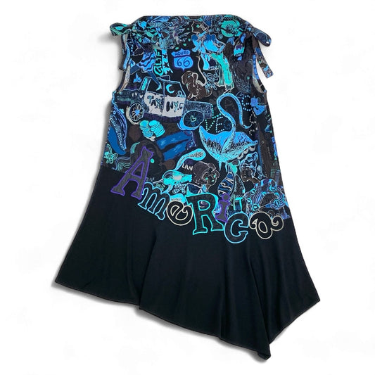 2k19《美品》 TOKUKO 1er VOL トクコプルミエヴォル ノースリーブワンピース ロングワンピース アシンメトリー 総柄プリント 9 ブラック レディースu02t