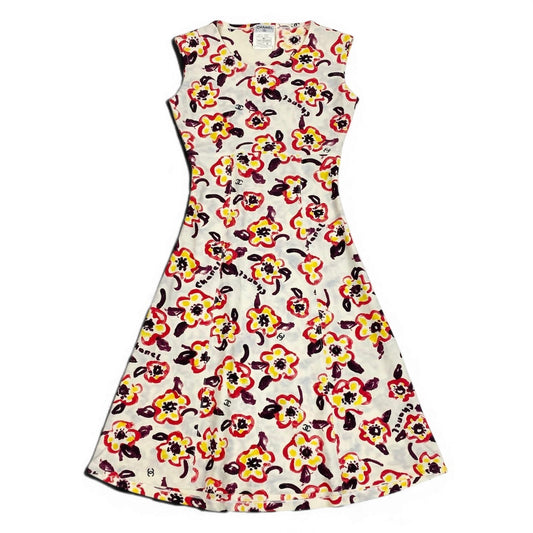 Cⅾ23 CHANEL シャネル ノースリーブワンピース ストレッチ フラワープリント ココマーク PO6193V04589 サイズ36 マルチカラー レディース 女性用k02i