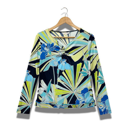 84b17 LEONARD レオナール ロングスリーブシャツ チュニックシャツ 総柄プリント 0395247 9Rサイズ ブルー系 コットン100% レディース 女性用u02t
