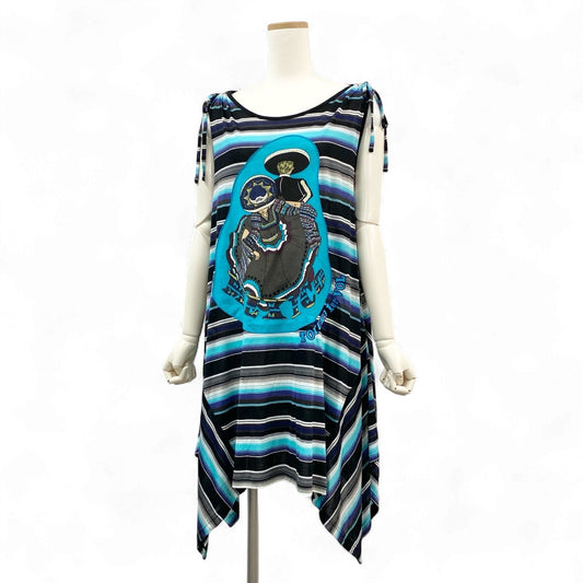 2k19 TOKUKO 1er VOL トクコプルミエヴォル ノースリーブワンピース ロングワンピース 裾変形デザイン ボーダー 9 ブルー系 レディースu02t