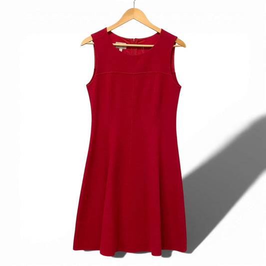 44d3 ARMANI COLLEZIONI アルマーニコレツィオーネ ノースリーブワンピース Aライン 伸縮ストレッチ〇 ウール100% レディース 女性用 42 レッドo07t