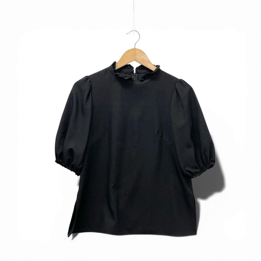 14d3 【美品】Rene ルネ パフスリーブシャツブラウス フリルブラウス 半袖ブラウス 5331120 34サイズ ブラック ポリエステル100% レディース 女性用u02t