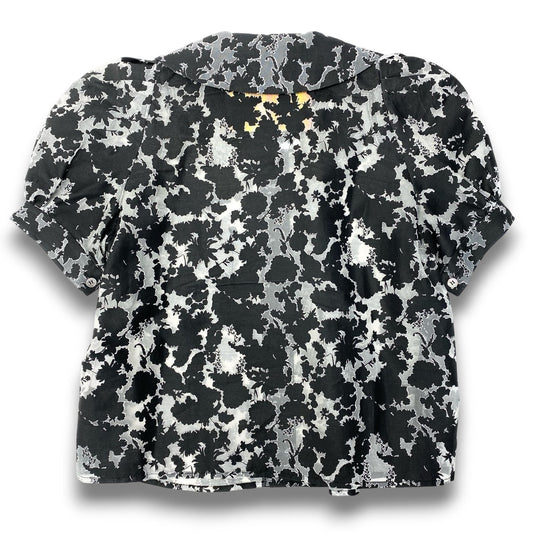 54c20 《美品》 mikio sakabe PINK HOUSE ミキオサカベ ピンクハウス シアーシャツ 半袖シャツ ブラウス 総柄 ブラック グレー レディースu02t