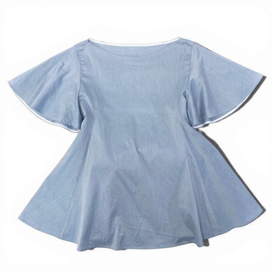 11b6 FOXEY NEW YORK フォクシーニューヨーク フレアスリーブ 半袖シャツ ブラウス ウエストリボン トップス 42992 38 ライトブルーレディースu02t