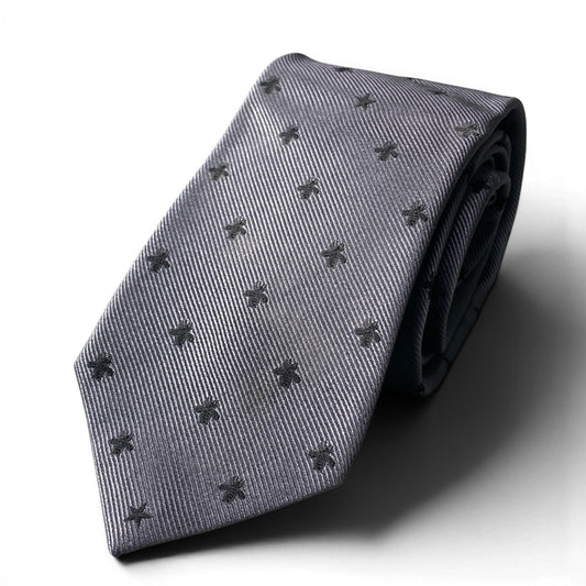d23 GUCCI グッチ ネクタイ ビー&スター 総柄 刺繍 ビジネス フォーマル 148cm×7cm グレー シルク100% メンズ 紳士用k02i