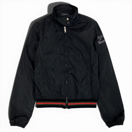 36b9 Vintage GUCCI グッチ シェリーライン ジップアップブルゾン ナイロンジャケット 267788 S ブラック ナイロン レディースta1