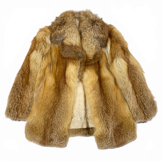 60b3 レッドフォックス ファーコート サイズF 茶系 本毛皮 Red Fox Fur Coat 裏地豪華刺繍t18r