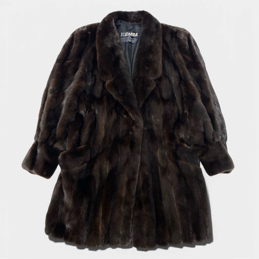 57c2 EMBA エンバ BLACKGLAMA ブラックグラマ 斜め段 マホガニーミンク ロングコート F ブラウン 最高級本毛皮 Mink Fur Long Coatt18r