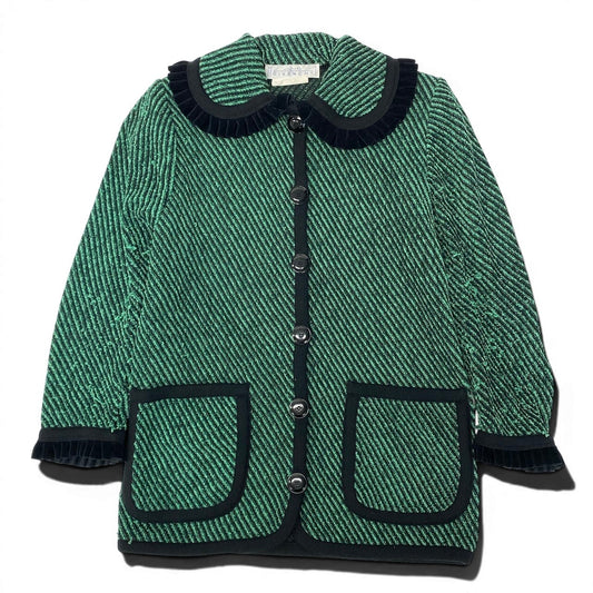 7d24 GIVENCHY ジバンシー ニットジャケット ストライプ柄 サイズ38 グリーン ブラック ウールブレンド レディース 女性服o07t