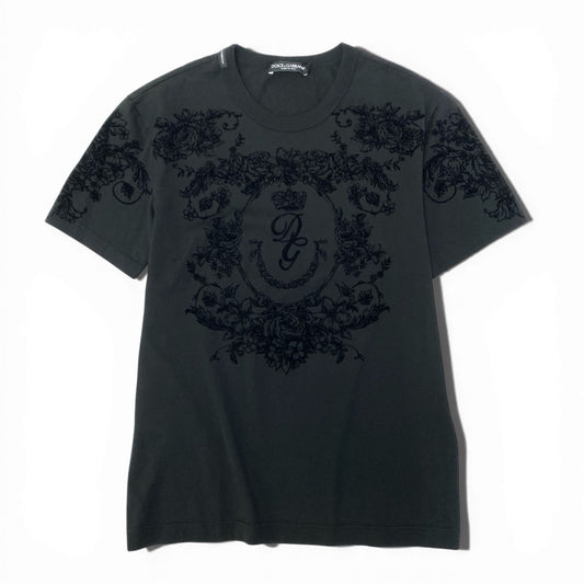 14c3 DOLCE&GABBANA ドルチェアンドガッバーナ 半袖Tシャツ フロックプリント バロック調 トップス G8KBAT/G7SPM 46サイズ ブラック コットン100% メンズ 男性用o07t