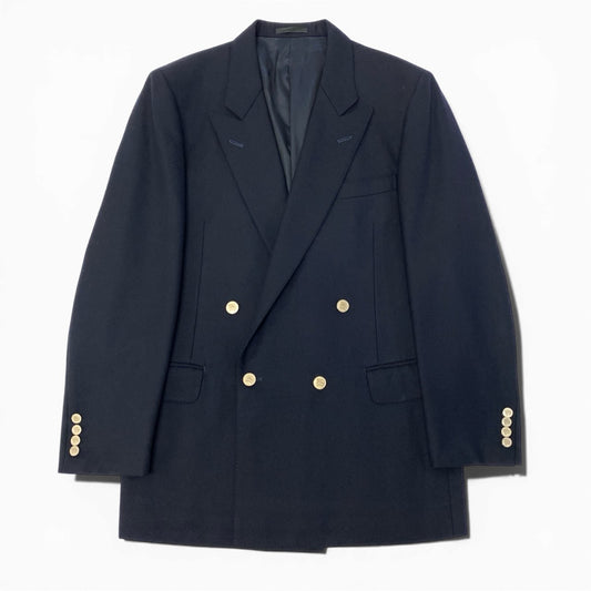 56c9 《美品》 OLD Burberrys バーバリーズ 紺ブレザー ホース金ボタン テーラージャケット ダブル 180A7 ネイビー ウール メンズu02t