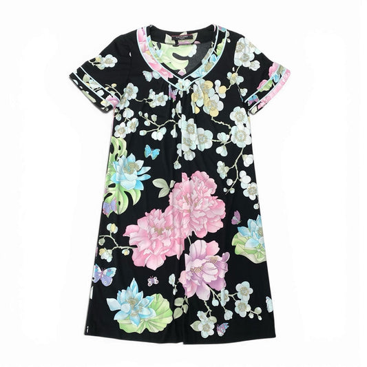 78a5【極美品】LEONARD レオナール ロングスリーブラメニット 美しい花柄プリント トップス 0497794 Mサイズ ブラック レディース 女性用u02t