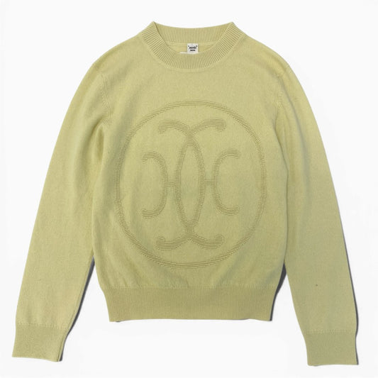 29d3 HERMES エルメス Hリフト クルーネック ニットセーター カシミヤニット フロントロゴ レディース 女性用 2H2631D1 36 イエロー系 カシミア100%o07t