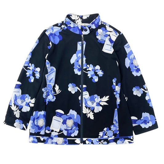 31b6 【美品】LEONARD SPORT レオナール スポーツ ジップアップジャケット ブルゾン 香水 花柄プリント 0578942 42サイズ ブラック ブルー ポリエステル100% レディース 女性用u02t