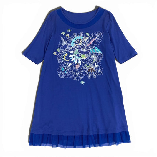 68b27 TOKUKO 1er VOL トクコプルミエヴォル チュニックワンピース 半袖 花柄プリント メッシュ切替 レディース 女性服 サイズ9 ブルー コットン100%u02t