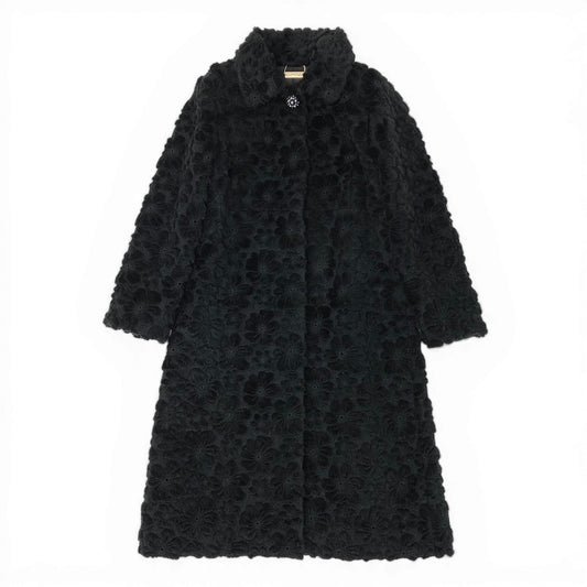 49d5 《極美品》 LEONARD FASHION レオナール OPERA オペラ フラワーモチーフ ジャカードコート 0348018 サイズ3 ブラック 日本製t18r