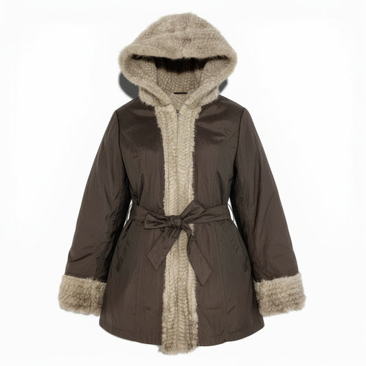 84b3 スペイン製 サファイアミンク フード付 リバーシブルコート サイズ38 シルバーグレー 本毛皮 Sapphire Mink Fur Coatt18r