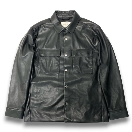 35c20 Calvin Klein Jeans カルバンクライン フェイクレザー シャツジャケット ジョングク着用商品 S ブラック メンズu02t