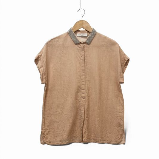 24d3 FABIANA FILIPPI ファビアナフィリッピ フレンチスリーブシャツ コットンシャツ 半袖 ビーズ装飾 イタリア製 レディース サイズ40 XS ピンクベージュ コットン100%o07t