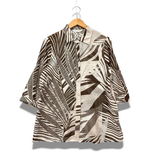 58b17 【美品】 レオナール 七分袖シャツ シアー 総柄 40 ブラウン レディース 女性用u02t