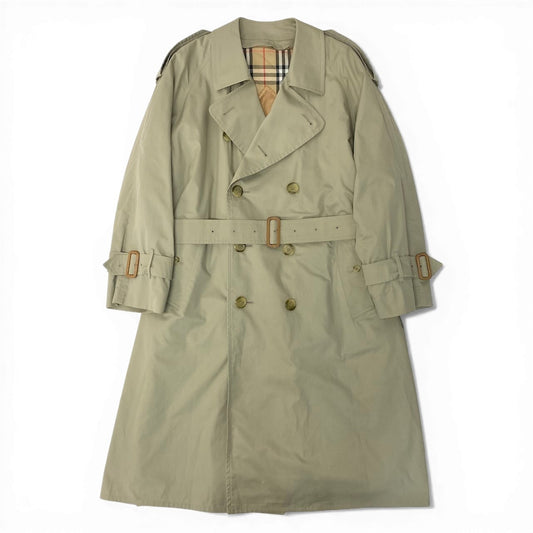 49d5 【英国製】BURBERRYS ヴィンテージ バーバリーズ 中綿キルティングライナー付き ステンカラーコート サイズXL程度 ベージュ メンズ アウター コートk02i