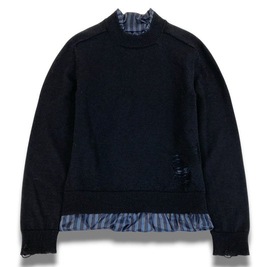 Ac2 Maison Margiela メゾンマルジェラ 2021AW デストロイ加工 レイヤード ニットセーター 4つタグ サイズS ブラック メンズ トップス ニットk02i
