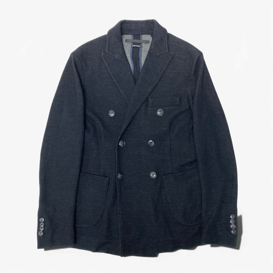 11b6【美品】GIORGIO ARMANI ジョルジオアルマーニ ダブルブレストテーラードジャケット ブレザー コットンウールジャケット 48サイズ ダークネイビー メンズ 男性用u02t