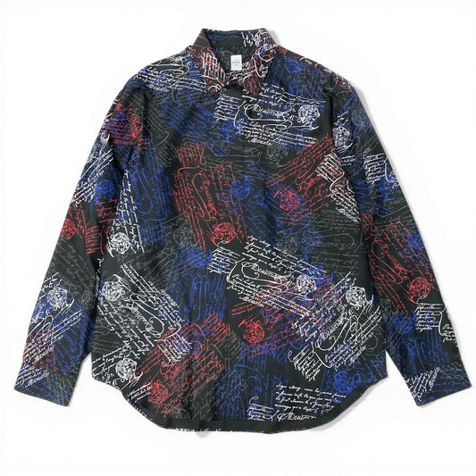 62d5 《美品》 Berluti ベルルッティ カリグラフィ スクリット シルクシャツ サイズA42 ブラック Scritto Silk Shirtt18r