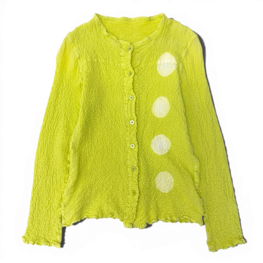 78b5 ISSEY MIYAKE me イッセイミヤケ ミー カリフラワーカーディガン ノーカラージャケット シワ加工 MI82FO759 イエローグリーン レディース 女性用u02t