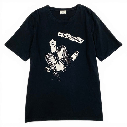 K6c20 SAINT LAURENT PARIS サンローラン パリ ロックンロール グラフィック Tシャツ カットソー トップス 631800 M ブラック コットン メンズsn1