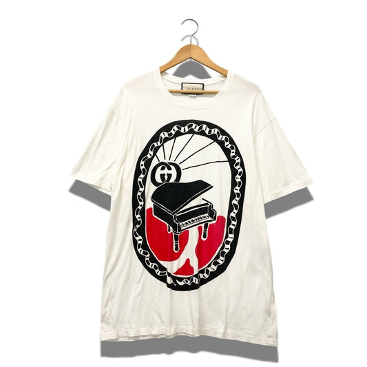 44b17 GUCCI グッチ 半袖Tシャツ ピアノプリント トップス Lサイズ ホワイト コットン100% メンズ 男性用u02t
