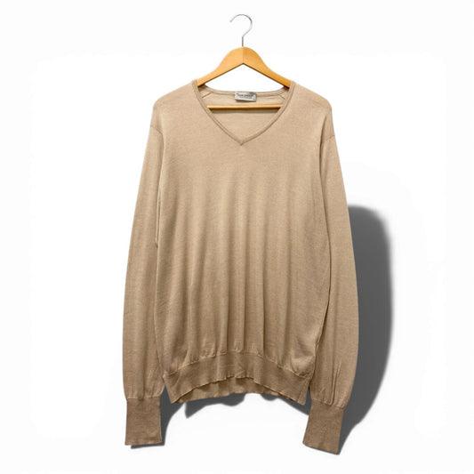 6b17 JOHN SMEDLEY ジョンスメドレー Vネックニットセーター コットンウール イギリス製 XLサイズ ベージュ メンズ 男性用u02t