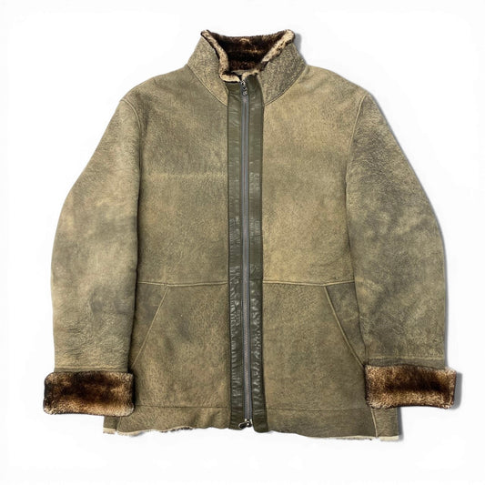 57d5 ARMANI COLLEZIONI アルマーニ コレッツォーニ リアルムートンジャケット サイズ50 グレー シープスキン 羊革 Real Mouton Jackett18r
