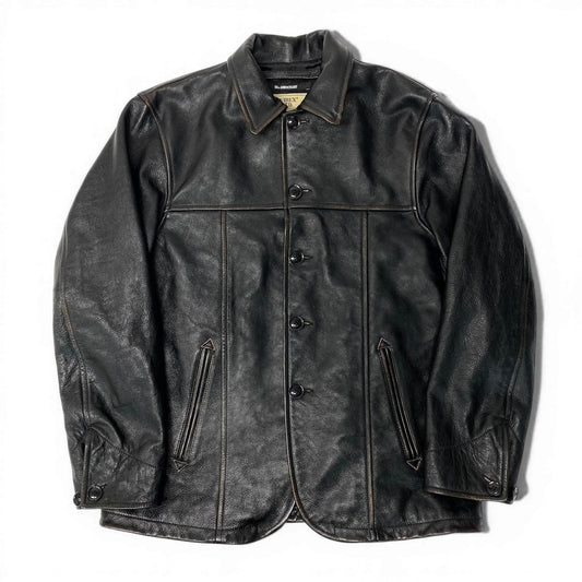 62d5 《美品》 AVIREX アヴィレックス 50th カウハイド カーコート サイズL ブラック 牛革 レザージャケット Vintage Finish ヴィンテージ加工t18r