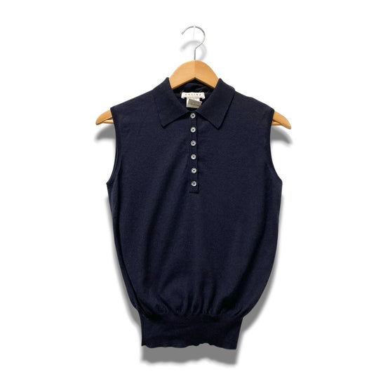 53b17 【美品】CELINE セリーヌ カシミヤ混ニットベスト ニットポロシャツ ニットセーター Mサイズ ネイビー レディース女性用u02t